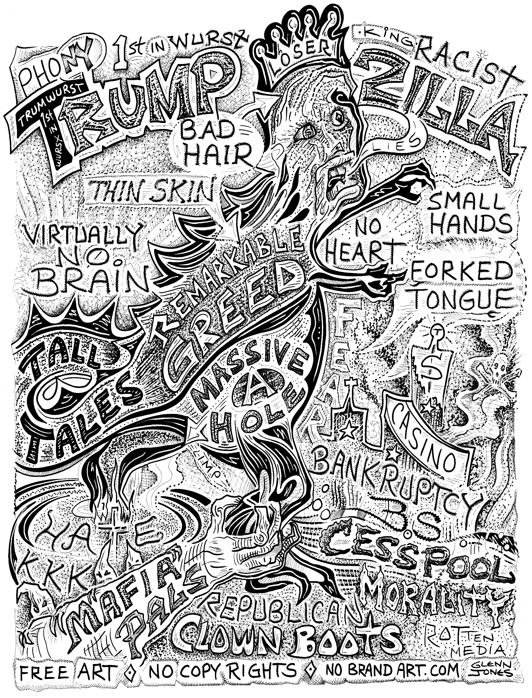 The DUMP TRUMP image can be digitally spread at no charge - Glenn Jones, NoBrandArt.com